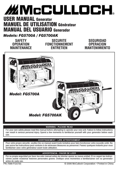 Read Online mcculloch fg6000mk generator manual Doc